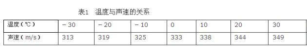 由于超声波也是一种声波,其声速c和温度有关,附表1列出了几种不同温度下的声速。在使用时,如果温度变化不大,则可认为声速是基本不变的。如果测距精度要求很高,则应通过温度补偿的方法加以校正。声速确定后,只要测得超声波往返的时间,就可以求出距离。这就是超声波测距原理。